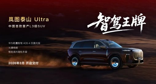 其中,岚图泰山Ultra计划于2026年3月率先交付,它属于岚图泰山的新增版本,预计将会在辅助驾驶领域进行大幅升级,搭载华为乾崑四激光雷达方案,进一步强化高端属性以及用户忠诚度,成为岚图品牌在SUV领域的全新旗舰车型。