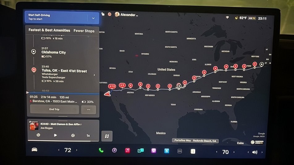 2025年12月31日,美国一普通车主使用特斯拉 FSD V14.2 完成了首次美国东西海岸0接管穿越。全程 4400 公里(2732.4 英里)、历时 2 天 20 小时,含超级充电站停车环节在内实现零接管,验证了自动驾驶的实用能力。
