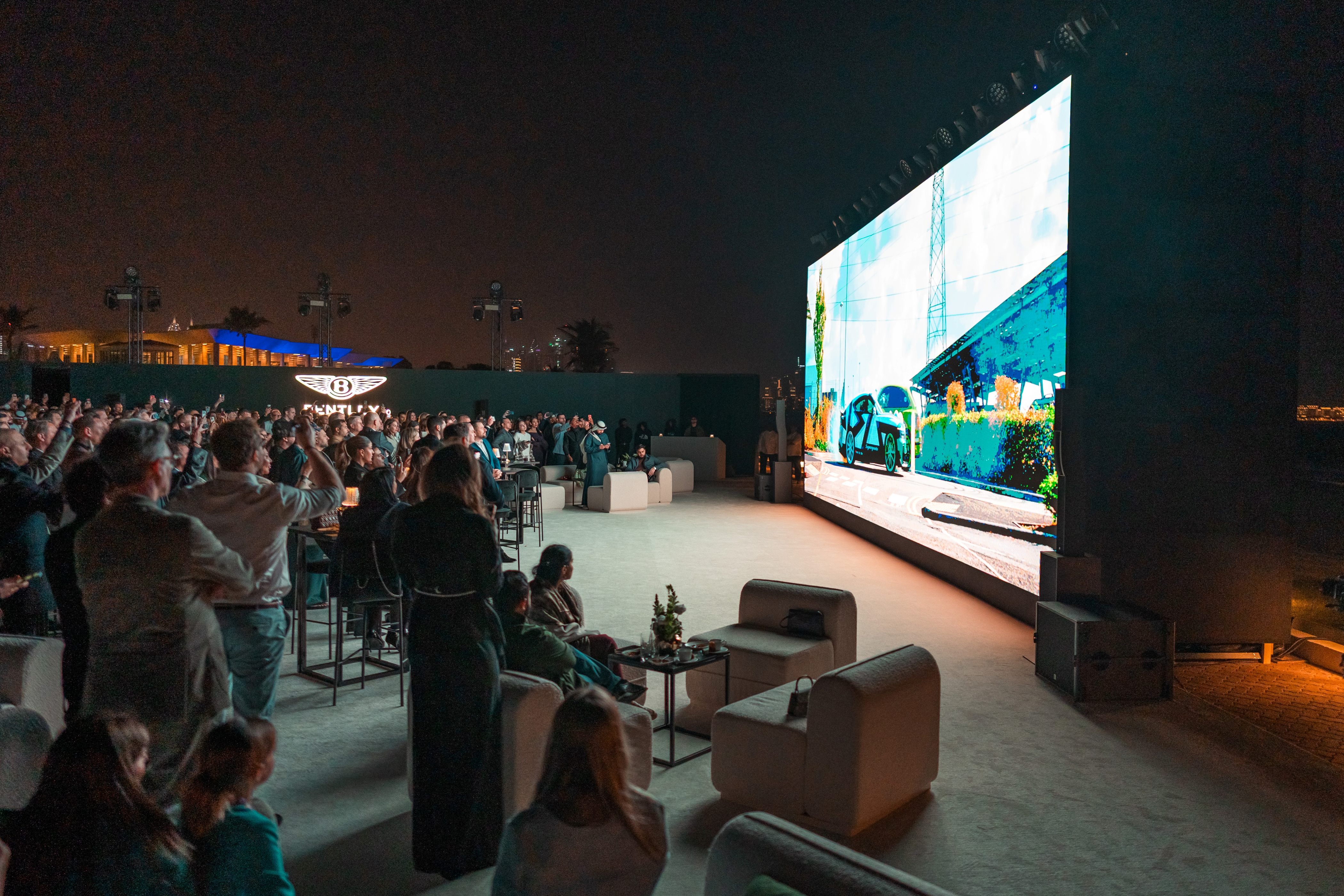 嘉宾们齐聚位于迪拜海岸线的Sheikha Sanaa Bint Mana Al Maktoum前皇家宫殿花园,迪拜帆船酒店(Burj Al Arab)矗立于旁,为此次活动点亮宾利品牌专属绿色。