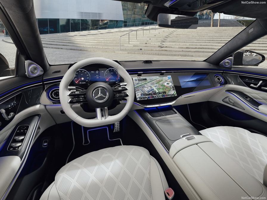 新S级在底盘用上智能阻尼系统,类似蔚来的4D舒适领航,可以根据其它车辆反馈的云端信息提前调整阻尼。此外,新车空气悬架全系标配,甚至后轮转向也在部分市场标配,整体来看,底盘素质有所提升。