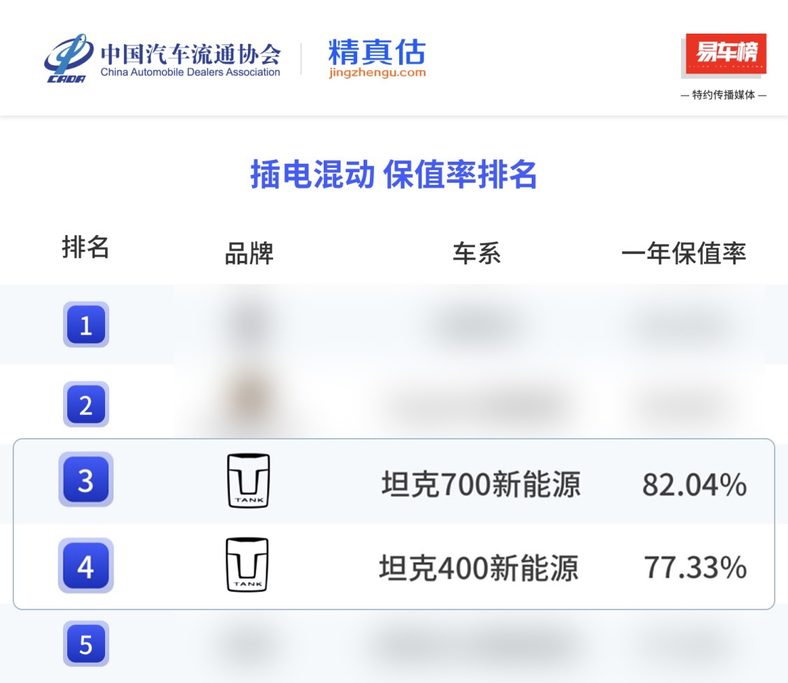 翻开榜单,坦克展现出的统治力令人称道:坦克300三年保值率高达65.90%,稳居紧凑型SUV全品类第一;坦克300 Hi4-T一年保值率74.95%,荣膺插混紧凑SUV冠军。更令人瞩目的是高端战场,坦克700 Hi4-T以82.04%的一年保值率,直接跻身插混保值率榜单前三,与问界M9、保时捷Cayenne等豪华旗舰并肩。