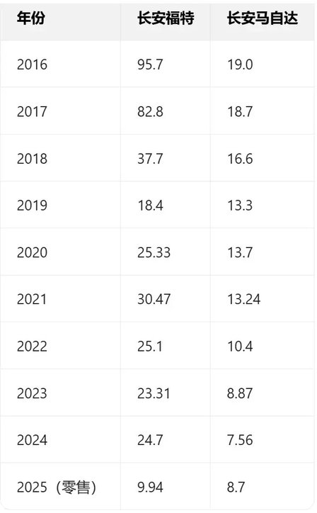 在巅峰时期的2016年,长福的销量达到95.7万辆,长马仅为19万辆,不到长福的1/5。