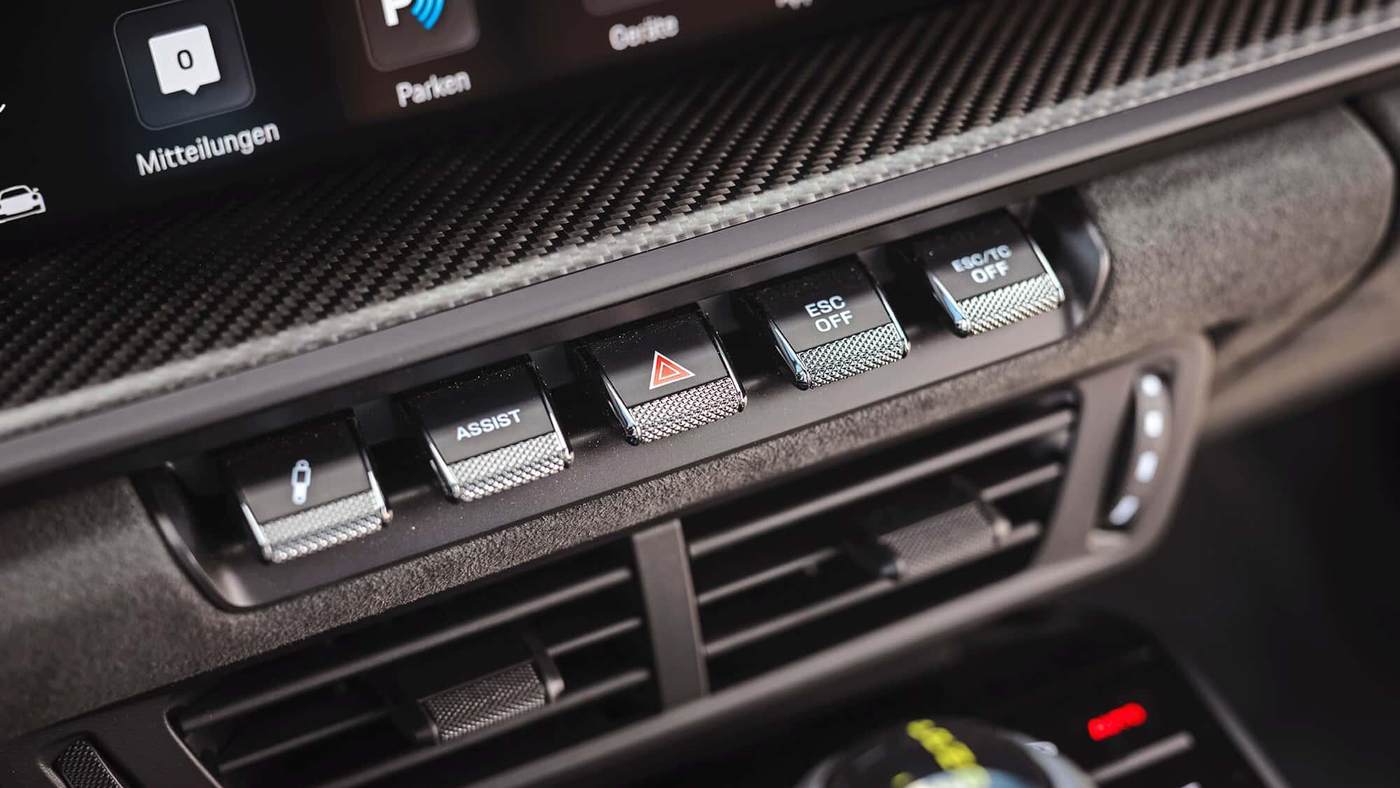 与Carrera车型不同,后者需要在触控屏的层层菜单中翻找驾驶辅助设置,而GT车型则配备了一枚专属的“Assist”快捷按键。这枚按键位于中控台中央的实体按键排中,是“去繁就简”的典范之作。