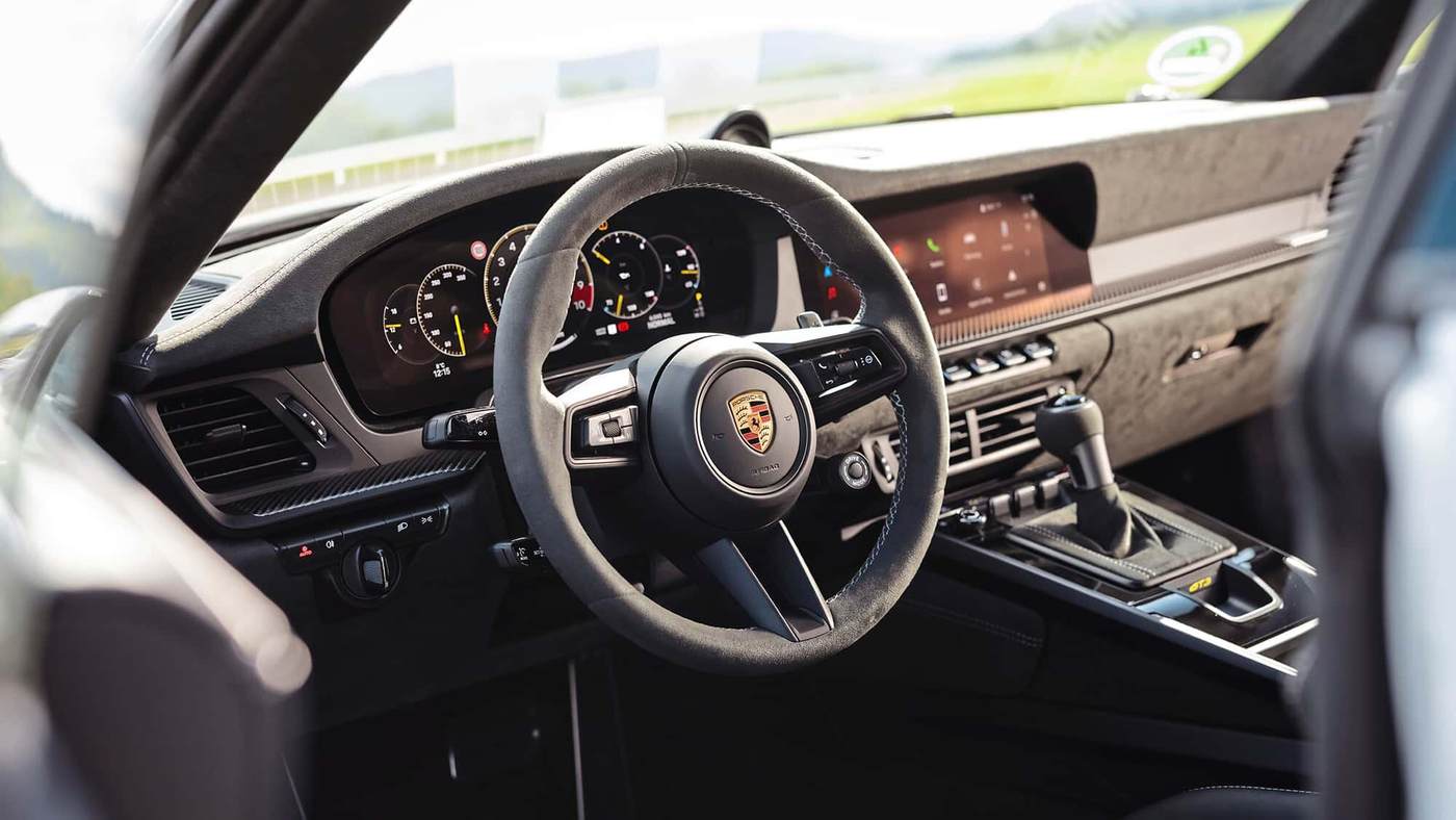 第一,哪怕经历了中期改款,GT3依然不是一台为那些渴望驾驶轻松、甚至想把驾驶交给系统的人准备的车。第二点,同样重要,韦斯阿赫的工程师们深知这一点——甚至可以说,他们整个GT业务的商业逻辑,正是建立在主动驾驶的纯粹乐趣之上。正因如此,他们为GT3设计了一套极其高效的操作路径,用来迅速关闭一切可能削弱人机关系的系统。