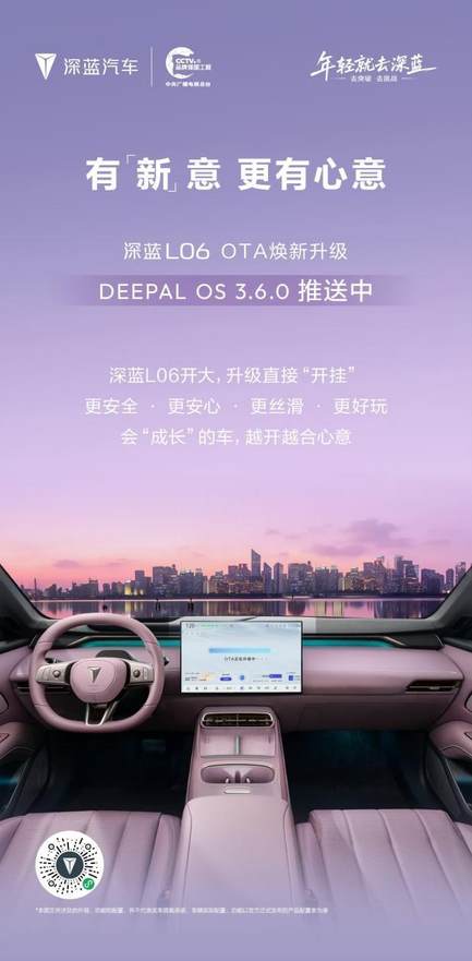 1月30日,深蓝汽车正式官宣,深蓝L06 OTA焕新升级,DEEPAL OS 3.6.0版本陆续推送中。此次升级围绕“更安全、更安心、更丝滑、更好玩”四大维度,让车辆实现持续“成长”,为用户带来更优质的出行体验。