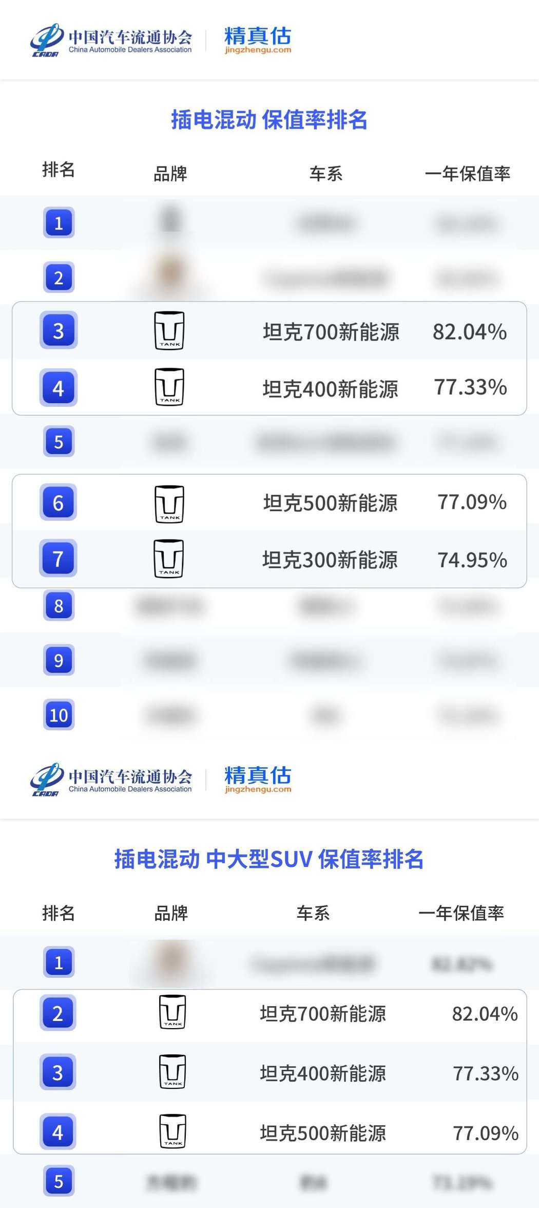 2026年1月,中国汽车流通协会正式发布了《2025年度中国汽车保值率报告》。在这份报告中,坦克300荣获燃油、插电混动紧凑型SUV双榜第一;同时坦克品牌插混车型集体霸榜,在与主流城市SUV、豪华品牌的同台竞技中跻身前列,展现了品牌坚持长期主义的市场收获,也是坦克品牌品类创新对同质化内卷的胜利。