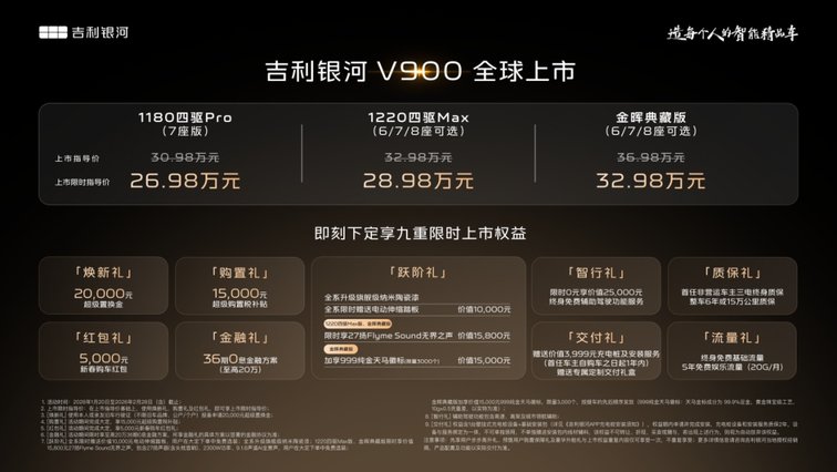 两度新车汇|吉利银河V900上市限时指导价26.98万元起