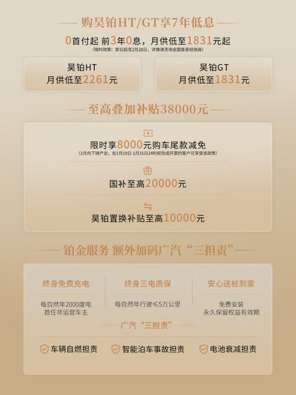 购车政策再升级,购广汽昊铂HT/GT尊享0首付7年低息