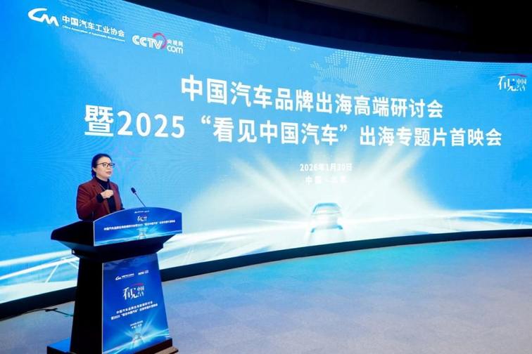 2026年1月30日下午,中国汽车品牌出海高端研讨会暨“看见中国汽车”出海专题片首映会在北京汽车博物馆举办。本次会议由中国汽车工业协会副秘书长柳燕主持,来自中汽协会、凯度中国等行业组织及国际知名咨询机构的专家,“看见中国汽车”专题片联合出品方央视网的相关负责人,支持单位北京汽车博物馆的领导层,主流汽车企业的品牌营销高管及主流媒体代表等众多嘉宾齐聚北京汽车博物馆,共同见证“看见中国汽车”出海专题片总片首映,共同探讨中国汽车行业高质量出海大计。