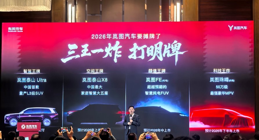 岚图是东风集团的旗舰,也是首个实现SUV、MPV、轿车全覆盖的高端新能源品牌。今年会推出岚图泰山Ultra、“庭院级大五座SUV”岚图泰山X8,代号为“FE”的全新FUV,以及代号为“珠峰”MPV四款新车。