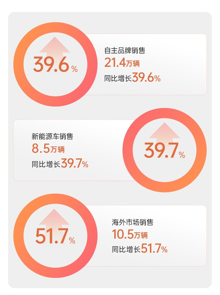 今年1月份,上汽自主品牌销量达21.4万辆,同比增长39.6%,占公司销量比重达65.3%,较去年同期提升7.3个百分点。其中,上汽乘用车销售7.7万辆,同比增长53.8%;上汽大通销售1.8万辆,同比增长18.2%;上汽通用五菱销售10.5万辆,同比增长37%。