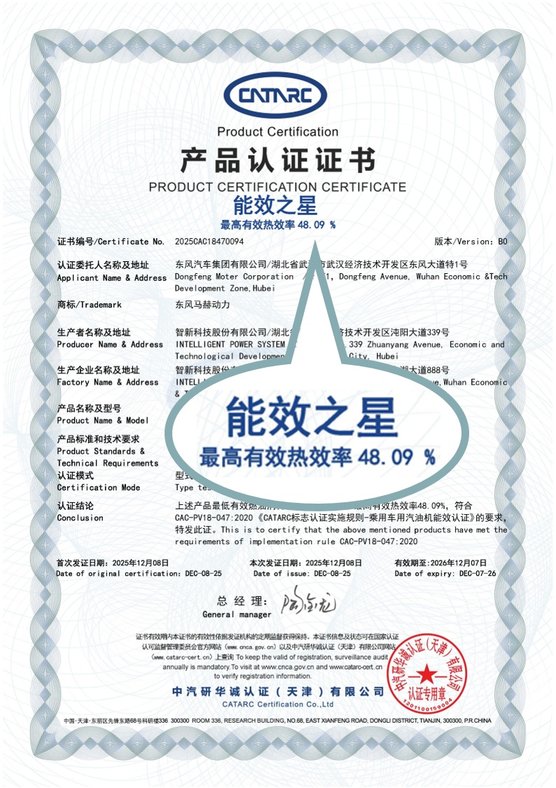 技术是品牌长期主义的底气。东风风神依托集团深厚底蕴,在核心动力领域持续突破。马赫电混系统最新一代1.5T混动专用发动机,以最高有效热效率45.18%获得中汽中心“能效之星”认证,成为行业首款突破48%热效率的混动汽油发动机,在强动力、低油耗与平顺性上树立新标杆。同时,L2+级智能驾驶辅助覆盖28项高频场景,一体化压铸技术提升车身刚性与安全,为家庭出行筑牢技术防线。