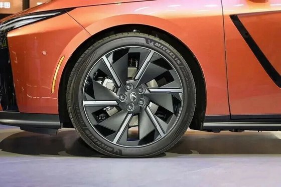 新车侧面造型极具视觉吸引力,长前悬、短后悬的黄金比例,使其视觉观感更趋近于轿跑车型。流畅的大溜背弧顶搭配低趴车身姿态,营造出纯粹的运动氛围。新车还配备隐藏式门把手与低风阻轮毂,大幅优化风阻表现;车门板处的黑色装饰条从前门延伸至后门,形成连贯视觉线条,有效提升了车身侧面的辨识度。车身尺寸方面,新车相较现款全面升级,车身长度增加165mm,轴距同步提升80mm,空间表现迎来进阶。