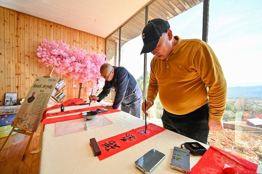 与此同时,新春对联书写活动在蔬蜜院山顶会客厅内温情上演,国家级书法家唐明全现场挥毫,一幅幅吉祥春联赠予嘉宾,为蔬蜜院增添了浓厚文化年味。