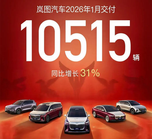 岚图汽车1月销量为10515辆,与去年同期相比增长31%。据官方透露,今年岚图汽车年内将推出四款搭载L3级智能辅助驾驶硬件的新车,涵盖SUV、FUV及MPV三大品类。其中,岚图泰山 Ultra将在3月开启交付。
