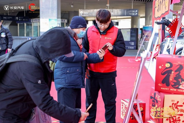 除此之外,在驿站还设有专业讲解人员为旅客现场介绍长安汽车旗下热门车型的性能亮点与舒适配置。让旅客在收获新春好礼的同时,也能亲身感受长安汽车在安全、科技与舒适方面的匠心之处,更直观地体验“科技长安”带来的出行温度。