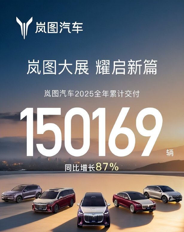 谁能想到,2025年的新能源汽车市场会卷到这个地步?早没了前些年“只要敢下场就能分到蛋糕”的宽松环境,整个赛道挤得满满当当——新势力们攥着好不容易打下的江山,日夜提防对手偷袭;传统车企巨头急得像热锅上的蚂蚁,拼了命想在电动化浪潮里跟上脚步。就在这刀光剑影的红海里,岚图汽车硬生生撕开了一道口子:全年交付150169辆,同比疯涨87%,更创下7个月从20万辆产能冲到30万辆的行业纪录,稳稳拿下“首个达成30万辆下线的央国企高端新能源品牌”这一头衔。
