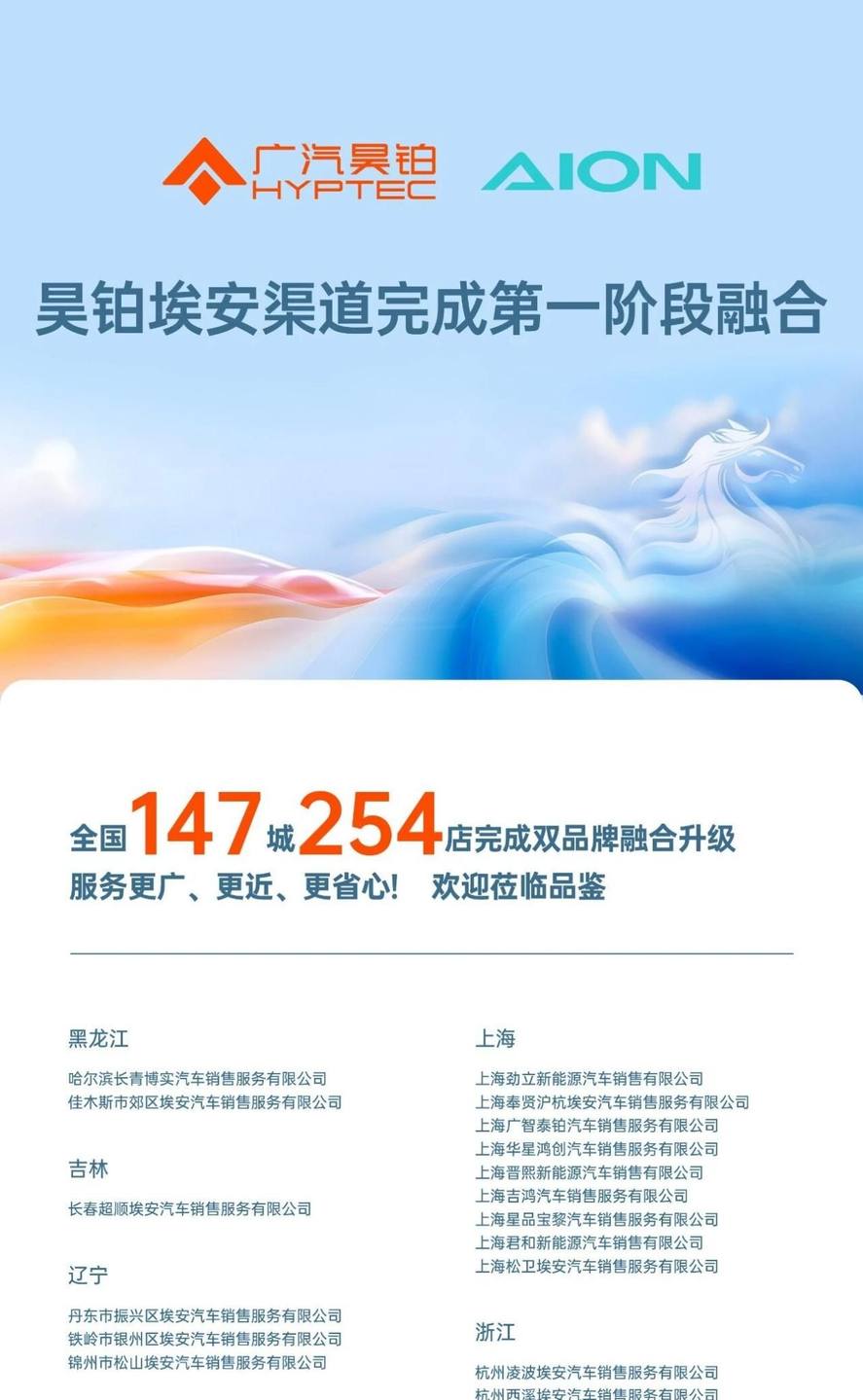 截至1月31日为止,昊铂埃安渠道已经完成了第一阶段的融合,已经有全国147城市,254店完成了双品牌融合,接下来,会扩张到1000店左右,未来将昊铂服务网络增长四倍,进一步实现全方位覆盖。通过昊铂埃安BU深度融合,致力于全面高效扩容网络渠道,大幅度提升销售与售后服务的高质量与高效性。