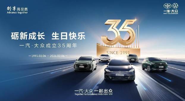 2026年2月6日,新春将至,万象更新。值此承载希望与憧憬的时刻,一汽-大众迎来了成立35周年的重要里程碑。35载征程,既是一部矢志不渝的奋斗史诗,也是一段与时代同行的辉煌见证。这不仅标志着企业自身发展迈上全新高度,更折射出中国汽车产业向更高质量、更高水平演进的时代进程。作为中国汽车工业对外开放的先行者与合资合作的典范,一汽-大众始终将自身发展融入国家改革开放宏伟进程,与时代脉搏同频共振,以卓越的成就诠释了产业领军者在现代化建设中的使命与担当。
