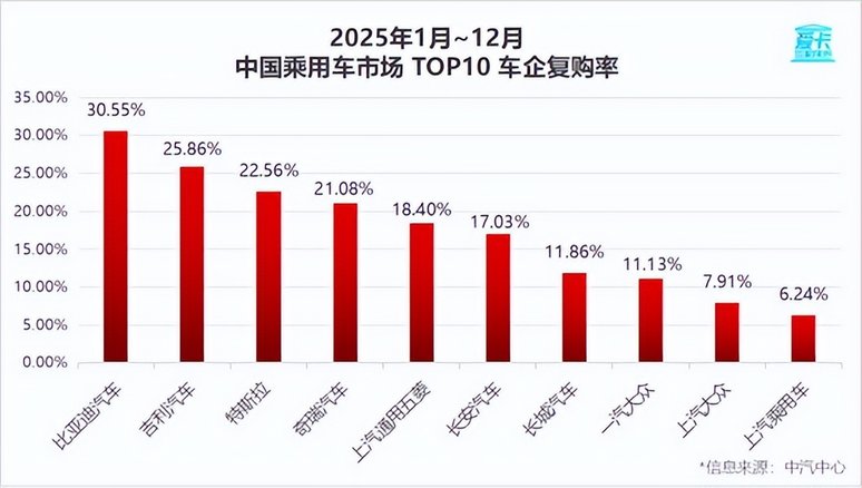 根据爱卡研究院发布的《2025年车企复购率榜单》显示,比亚迪老车主复购率达30.55%,位居第一,大幅超越吉利、奇瑞、长安等传统主流车企。汽车行业“规模扩大必稀释忠诚度”的惯性认知,被比亚迪打破。