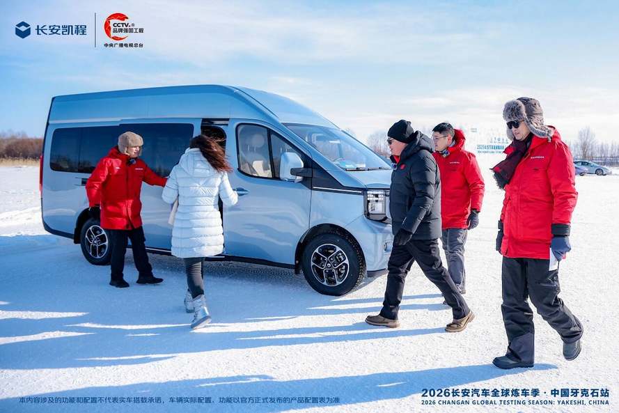 2月5日,“长安汽车2026年全球炼车季”在被誉为“中国冰雪之都”的内蒙古牙克石汽车测试基地拉开帷幕。中国长安汽车首席品牌官谭本宏,长安汽车执行副总裁、长安凯程董事长彭陶亲临极寒测试一线,与众多媒体、行业大咖一同见证明日数智轻客——长安凯程V919的严冬淬炼。长安凯程V919项目总监朱振涛与用户代表驾驶长安凯程V919驶上极寒道路,开启“极寒试炼,VAN见真章”精彩直播,在体验车辆性能同时,解锁不一样的冰雪体验。