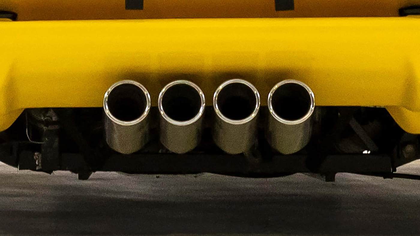 最为直观的特征,是位于车尾中央的四出排气布局,它清晰地暗示了这套动力系统的与众不同。此外,驾驶员一侧的后保险杠略微下垂,也表明这辆原型车在服役期间并未受到“温柔对待”。