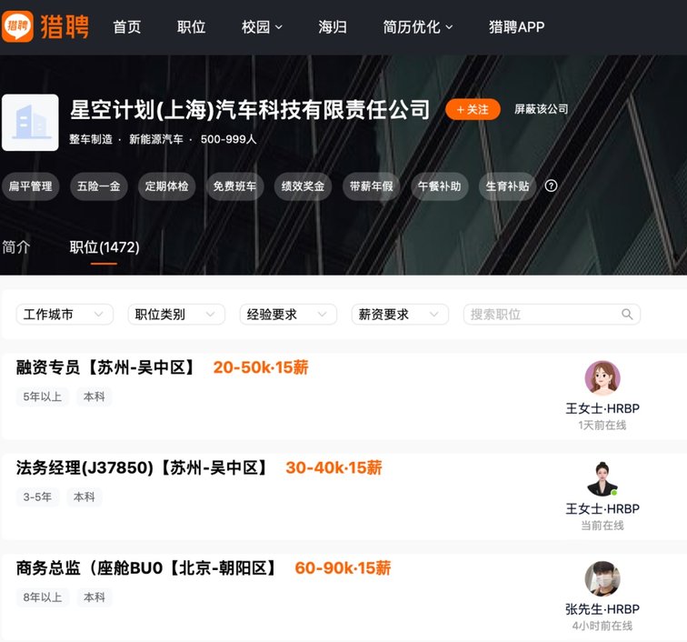 目前,其造车团队还在进行大规模扩张。《车壹条》从招聘软件上了解到,追觅旗下造车公司目前还在大量招聘相关人才,从HR到市场负责人均有岗位释出,办公地点主要集中在苏州、北京、上海。