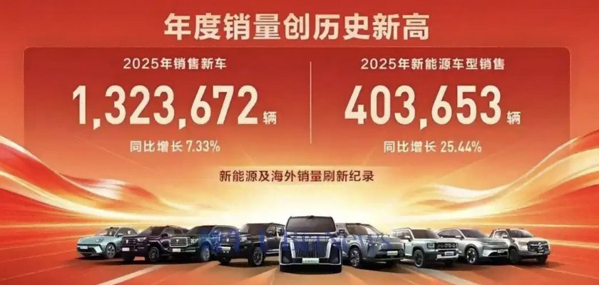 硬核技术支撑下,长城汽车的市场表现同样亮眼。2025年,长城汽车全年销售新车132.37万辆,同比增长7.33%,实现稳步提升。展望2026年,长城汽车也迎来新品爆发期,其中魏牌V9X已于活动当日登陆工信部申报,还有坦克800等重磅车型即将登场,长城汽车的市场竞争力将进一步提升。