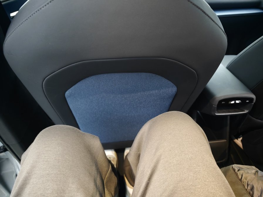 空间与乘坐舒适度表现可以说是明显短板了,尤其是后排乘坐与储物空间。前排两个座位还算是能舒展得开,座椅本身偏硬但也没什么不妥,后排就是完完全全的噩梦——在我拍的live图里,记录下了我不太文明的评价——首先开门角度就很小,朋友上车时差点被打到头,空间很小很拥挤,我们两个身高165-170cm的人在后排都觉得腿部空间所剩无几,头部空间倒是还算充裕,但如果给这块天幕装上一块遮阳帘,想必也会被侵占一部分空间。