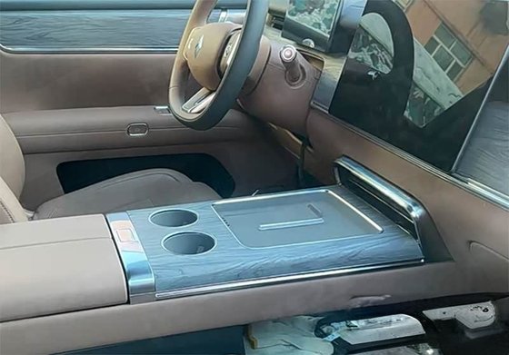 从图中可以看到,新车采用了浅色内饰,并且在细节之处加入了镀铬、木纹饰板等元素,让其看上去显得温馨、有质感。门板上还能看到按压式的电子门把手,上部还有金属质感的按键,估计是车窗按钮。屏幕并非联屏,而是全液晶仪表+悬浮式中控屏的独立屏幕,后者的尺寸看上去非常大,实车效果值得期待。下方能看到有手机无线充电和两个杯架,中央扶手为对开式设计,中央岛台下部还有非常大的储物空间。