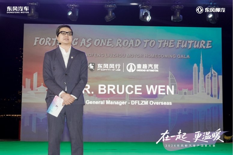 伴随着悠扬的旋律,东风柳汽进出口公司副总经理温华登台致辞:东风柳汽海外深耕35载,我们始终感恩每一位用户的信任与选择。正因为有大家的信赖,东风柳汽的产品才得以陪伴更多家庭的生活与旅途、见证更多企业的发展与壮大。同时,由衷感谢阿联酋经销商的大力支持和全情投入,让这一场跨越5000公里的“团聚”得以实现。未来,东风柳汽会继续保持务实奋斗的精神,用坚实可靠的品质与智能舒适的产品回馈用户。无论是创富助力还是温情守护,东风柳汽都将与全球用户并肩前行。
