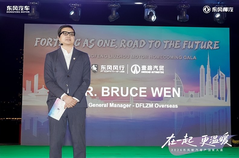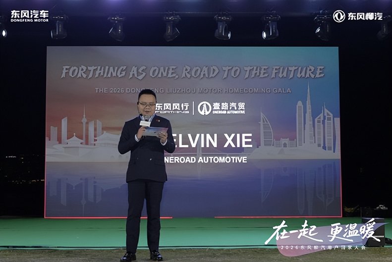 伴随着悠扬的旋律,东风柳汽进出口公司副总经理温华登台致辞:东风柳汽海外深耕35载,我们始终感恩每一位用户的信任与选择。正因为有大家的信赖,东风柳汽的产品才得以陪伴更多家庭的生活与旅途、见证更多企业的发展与壮大。同时,由衷感谢阿联酋经销商的大力支持和全情投入,让这一场跨越5000公里的“团聚”得以实现。未来,东风柳汽会继续保持务实奋斗的精神,用坚实可靠的品质与智能舒适的产品回馈用户。无论是创富助力还是温情守护,东风柳汽都将与全球用户并肩前行。