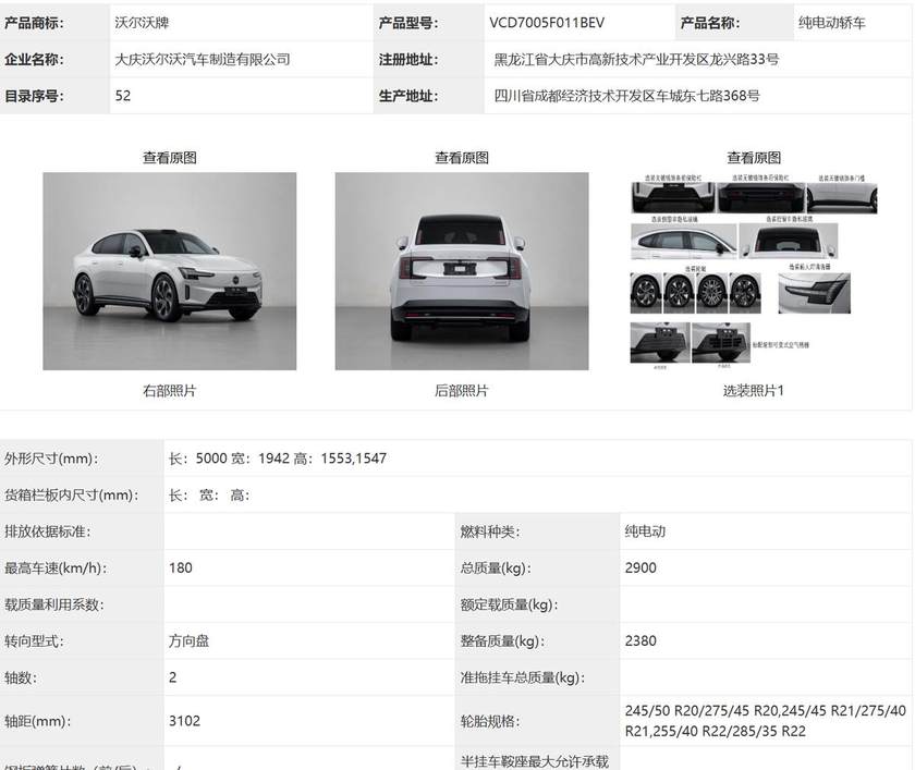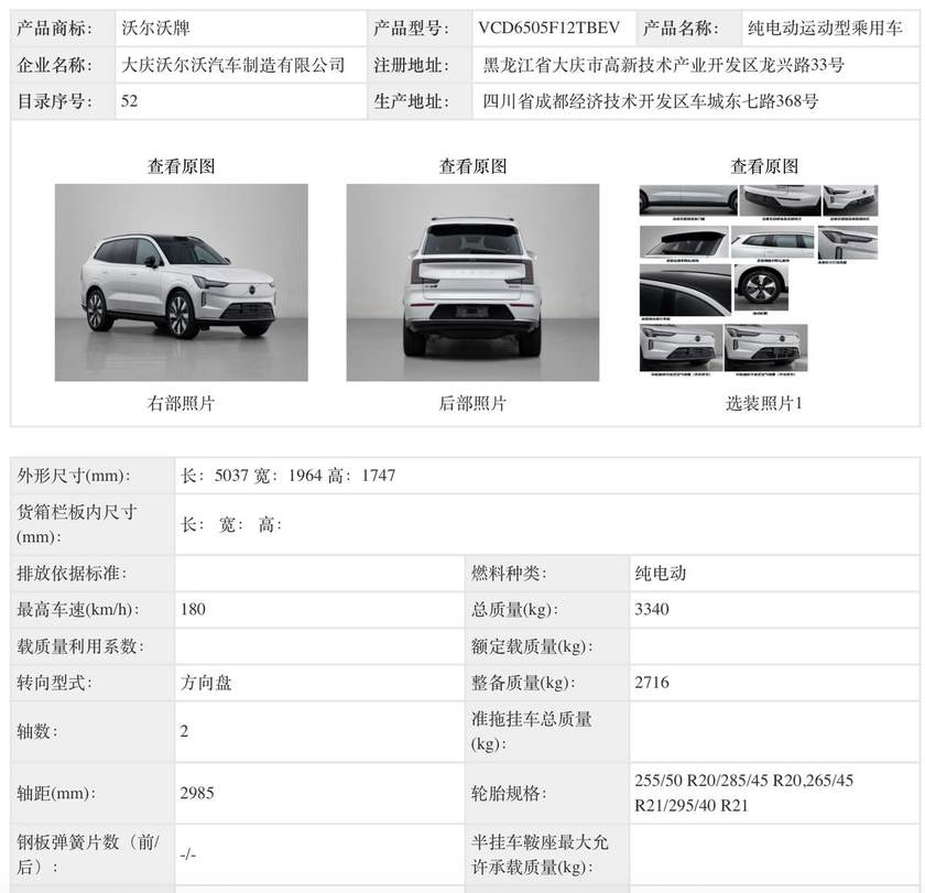 另外,两款车的尺寸也在公告信息中得以披露。其中ES90的车长为5米,轴距超过了3米,达到3102mm,符合自身的旗舰定位。EX90的车长更是超过了5米,达到了5037mm,轴距为2985mm,保证了整车的气场和车内的空间。此外还有关于动力、轮毂尺寸等信息也都一同释放了,感兴趣的同学可以到工信部网站查看。