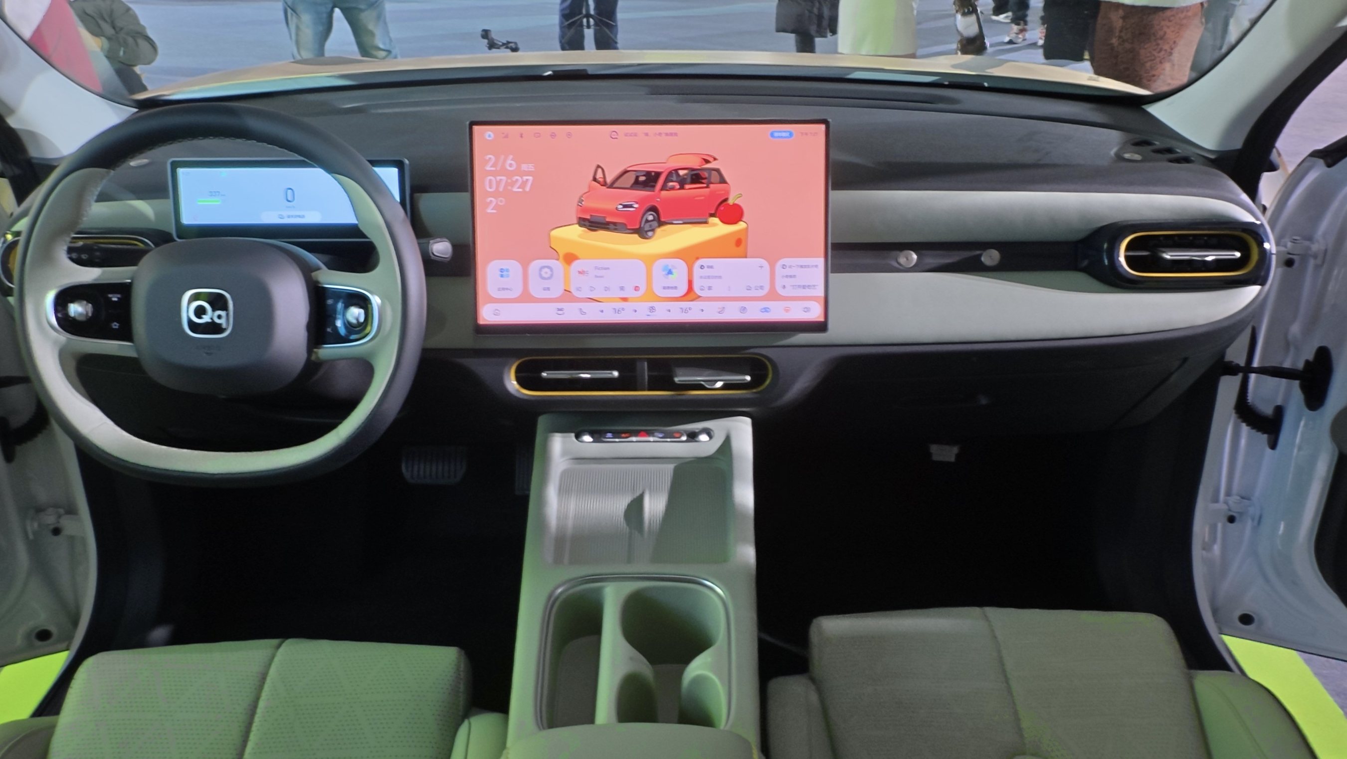 智能化是全新QQ3强调的产品方向。座舱方面,车辆搭载高通8155芯片,配备15.6英寸中控屏,并内置基于Carmind大模型的灵犀智舱系统,支持语音交互、多情景模式及车外喊话等功能。