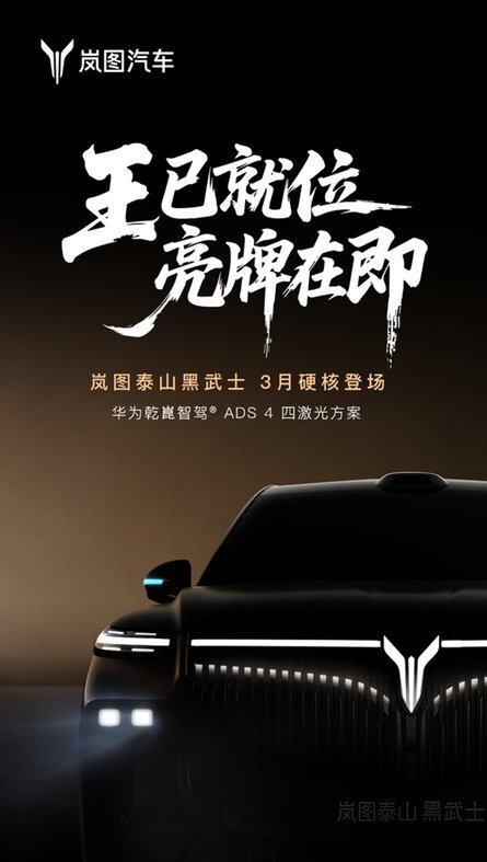 2月9日,岚图汽车官方社交平台发布视频,正式宣布岚图泰山黑武士版将于今年3月登场,采用限定发售策略。