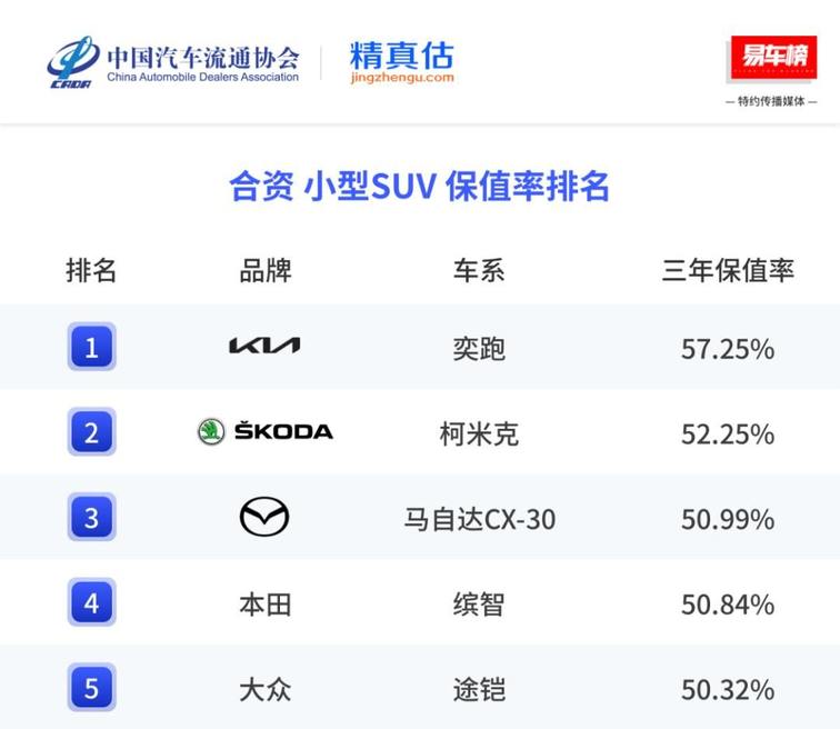 近日,中国汽车流通协会联合汽车数据服务平台精真估发布了《2025年度中国汽车保值率研究报告》,起亚奕跑三年保值率依然高达57.25%,稳居合资品牌第一、全系车型第二,进一步验证了消费者对其品质的认可与信赖。