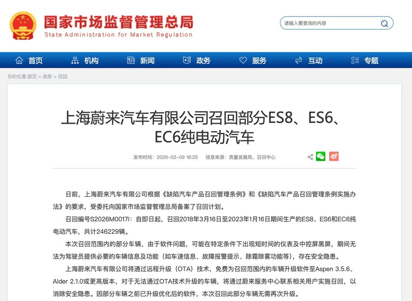 近日,国家市场监督管理总局发公告了,蔚来直接主动官宣召回24万多辆纯电车,整整246229辆!涉及的车型是2018年3月16号到2023年1月16号生产的ES8、ES6、EC6,这可是蔚来第一次大规模召回初代平台的主力车型,一覆盖就是近5年的车!