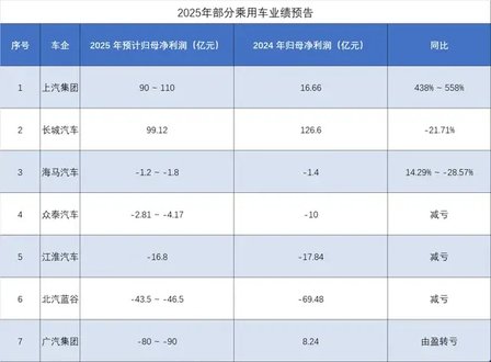 可再往下看,那可就惨喽——江淮汽车,预计亏了16.8亿;北汽蓝谷,亏得更狠,43.5亿到46.5亿;最吓人的是广汽集团,那可是老牌劲旅啊,预计亏损80亿到90亿元!乖乖,这亏的钱,够俺建十个大型猪场,养几十万头猪,躺平好几年了!
