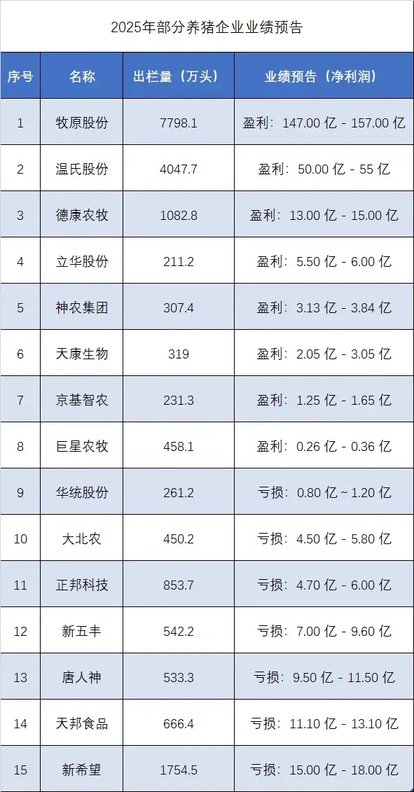 这时候再看看俺们养猪的:河南“猪王”牧原股份,那是俺的偶像,人家2025年预计归母净利润147亿到157亿元;行业老二温氏股份,稍微差点点,但也稳稳当当赚个50亿到55亿元。