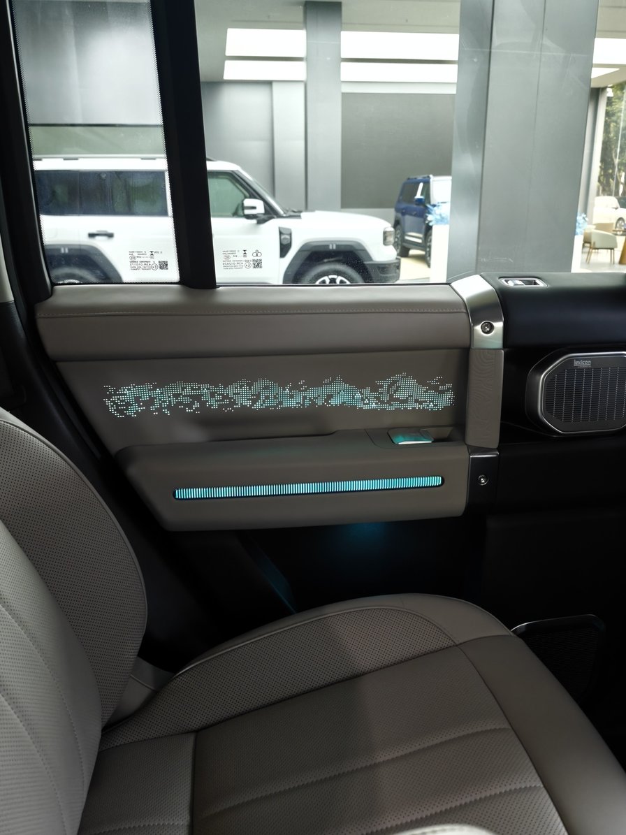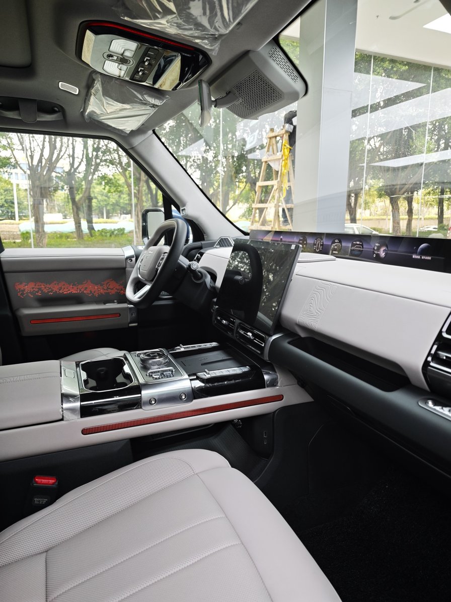 三台展车里有两台都是32万多元的版本,也是主销车款(这次体验的试驾车也是这个配置),不带空气悬架,更适合改装或是——拿去豁。我个人也认为这个配置性价比最高,该有的都有,比如基本的L2、莱斯康音响、四座通风加热按摩,缺少冰箱、电视和辅助驾驶系统,个人觉得必要性不强。