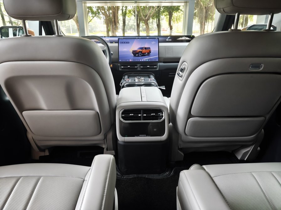 后排中央扶手放下是有阻尼的,会缓慢落下,非常高级。后备箱方正且巨大,锚点、电源接口等一应俱全,地台高度也是非承载式硬派越野车的标准水平。