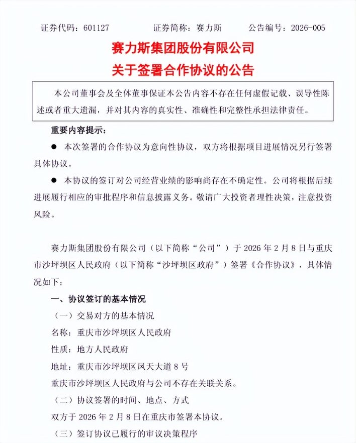 2026年2月9日,赛力斯旗下的蓝电汽车,突然官宣和重庆市沙坪坝区政府牵手成立新公司,正式跳出赛力斯的体系单飞。这事儿乍看只是一个汽车品牌的独立,往深了看,既是赛力斯给自己减负、专攻高端的战略抉择,更是重庆坐稳“中国汽车第一城”的又一步关键棋。新能源竞争早就打到下半场了,这场政企联手的资本操作,里头的门道可太多了。