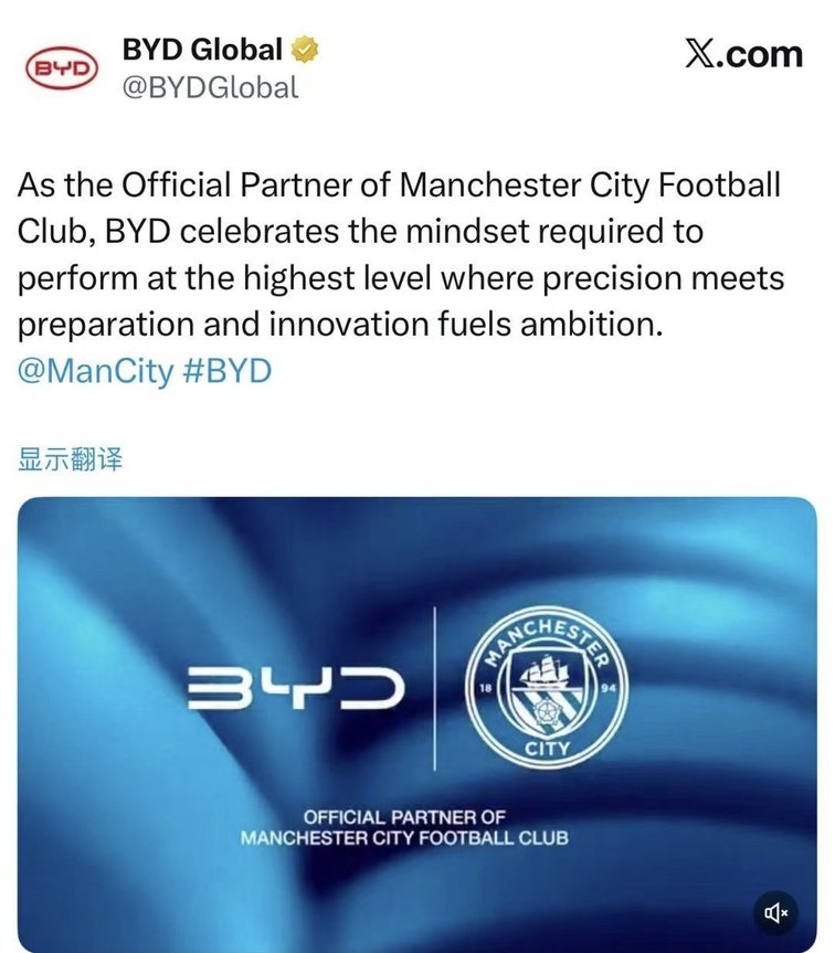 比亚迪携手曼城:新能源与绿茵场的跨界交响,奏响全球化新篇章