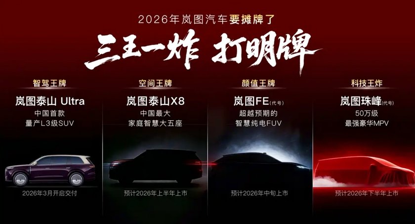 伴随港股上市的关键转折,2026年岚图汽车将推出4款新产品。