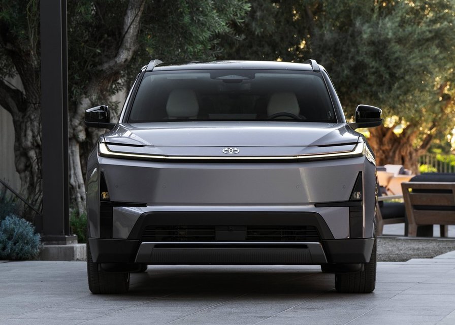 前脸保留丰田纯电车标志性的方正硬朗感,依然是贯穿式C型日行灯造型,采用封闭式前脸,但是封闭前脸和底部进气口带有棱面与内凹造型,强化了视觉效果。下方梯形进气口搭配银色护板,两侧为竖直锐利箭头造型,这里也把分体式大灯进行了隐藏设计,设计接近铂智7但是没有镀铬装饰。而上层日行灯保留C型轮廓,但上层横条没有灯组,而是镂空设计。