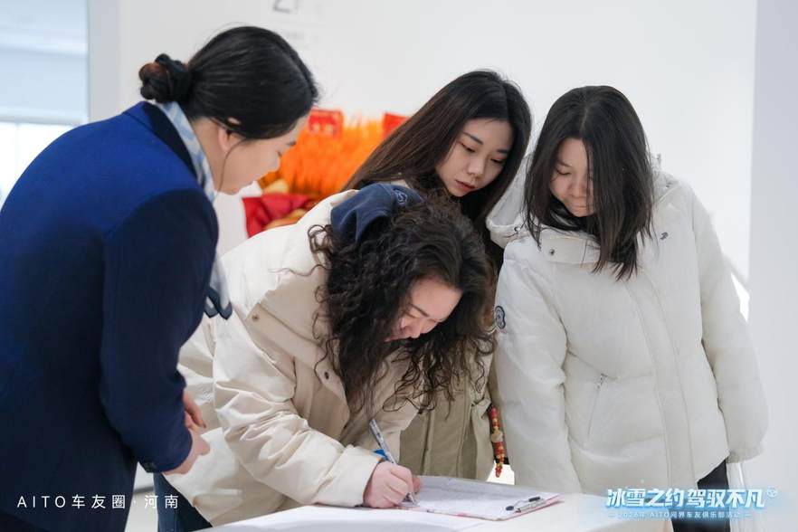 活动当日上午8时30分,车友们陆续抵达AITO授权用户中心·郑州中州大道店完成签到。现场秩序井然,工作人员引导迅速。随后举行的智驾讲堂环节,讲师围绕冬季行车安全展开讲解,重点分享雪地缓刹、控速等实用技巧,并就电池保养、防冻玻璃水选用等冬季用车知识进行系统普及。内容贴近实际,车友们认真聆听、积极互动,为后续雪地驾驶打下安全基础。