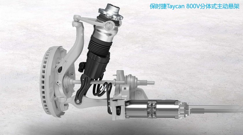 作为公认的“底盘大师”,保时捷在部分新能源车型上搭载有800V分体式技术加持的PAR(Porsche Active Ride)主动悬架,这套系统采用分体式液压泵设计,执行电机依托800V高压平台驱动,从而实现极高的功率输出,有外媒体验反馈“完全没有侧倾的那种平,不是几乎没侧倾,而是丝毫侧倾都没有”。