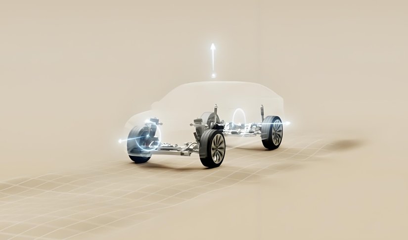 常见的可调节底盘只是按照预设好的软硬高低进行选择,而智能底盘则是在可调的基础上,具备更为快速的响应速度与更大的力度,同时会针对路面反馈情况进行主动“对冲”,并且,四个车轮端亦可以独立调节。