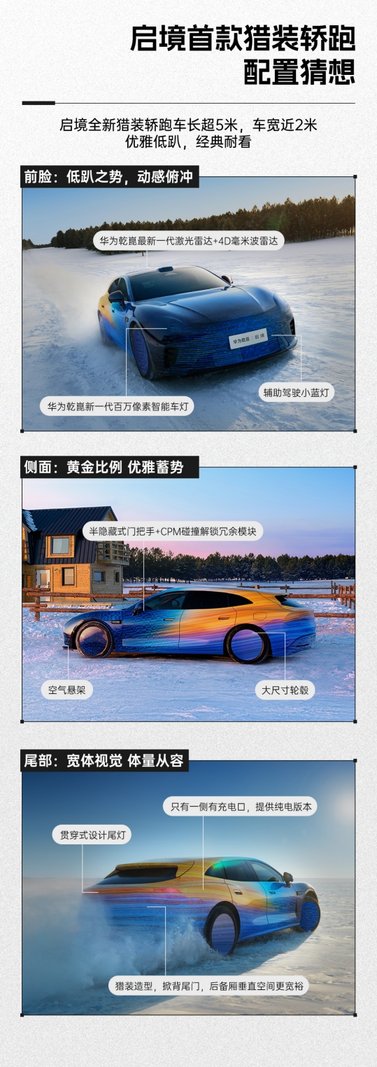 从“百万颜值”到“百万驾控”,再到“百万智能”,启境用“三个百万”构建起完整价值闭环。借助华为乾崑智能生态,启境这款新一代智能猎装轿跑不仅提供智能座舱、互联体验和自动驾驶辅助,还实现了多场景下的驾驶安全与便捷,让猎装车在智能化时代拥有全新生命力,成为2026年最值得期待的新车之一。