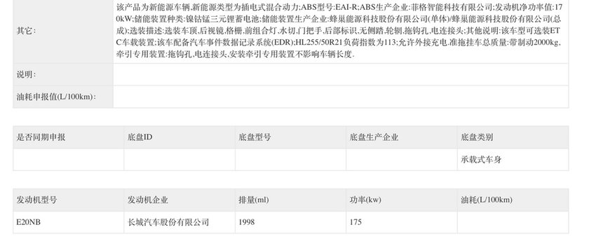 车身尺寸,魏牌V9X的长宽高分别为5299/2025/1825mm,轴距3150mm,是一台大6座布局的大型SUV。这个账面参数甚至比同期申报的全新一代理想L9还要大上不少。